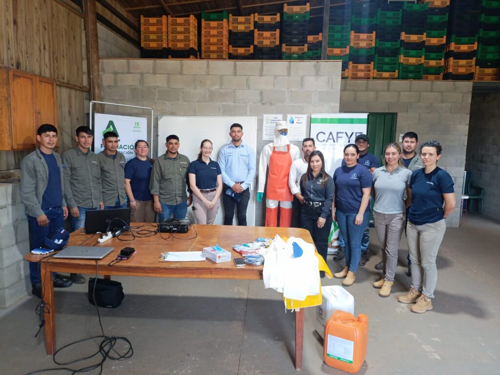 La Cámara de Fitosanitarios y Fertilizantes (CAFYF) llevó a cabo una jornada de capacitación dirigida a los técnicos de la empresa ChutaNut Paraguay, en la Colonia Volendam, departamento de San Pedro. Durante la jornada desarrollada el 28 de noviembre las orientaciones estuvieron centradas en el uso y manejo seguro de defensivos agrícolas y en el programa CampoLimpioSM, orientado a la gestión responsable de envases vacíos de productos fitosanitarios.