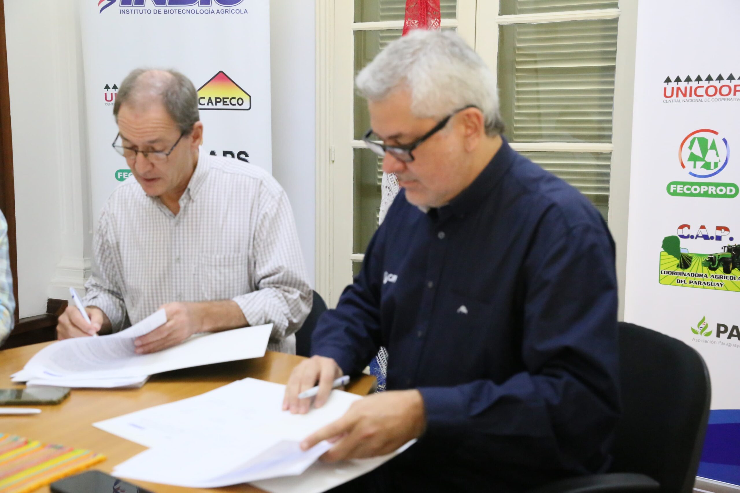 La firma se realizó el 17 de abril en Asunción. Por CAFYF suscribieron: el presidente, Ing. Agr. Francisco Fracchia y el secretario Ing. Agr. Matías Ipiña. Por INBIO, el presidente Alfred Fast y el secretario Hugo Pastore.