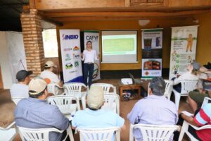 Las capacitaciones estuvieron a cargo de la Ing. Agr. Helena Valdovinos, coordinadora técnica de CAFYF. La primera charla se realizó el 25 de julio en la casa del productor Dionisio Páez, en el distrito de San Joaquín, Caaguazú y estuvo dirigido a productores cooperados del INBIO. La segunda Jornada fue el 26 de julio en la Escuela Agrícola de San Pedro, en el distrito de Santa Rosa del Aguaray de este departamento. Estuvo orientado a los estudiantes de la misma institución.