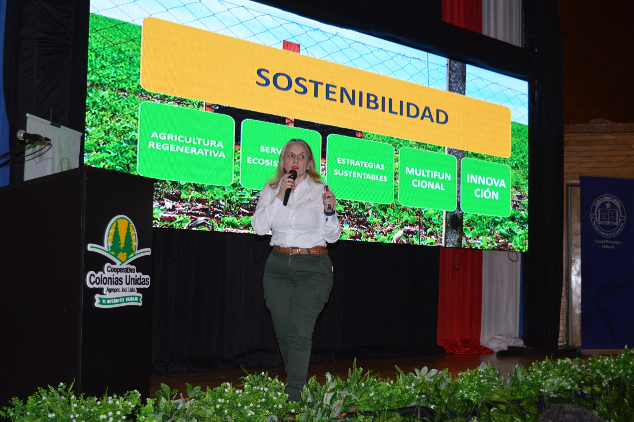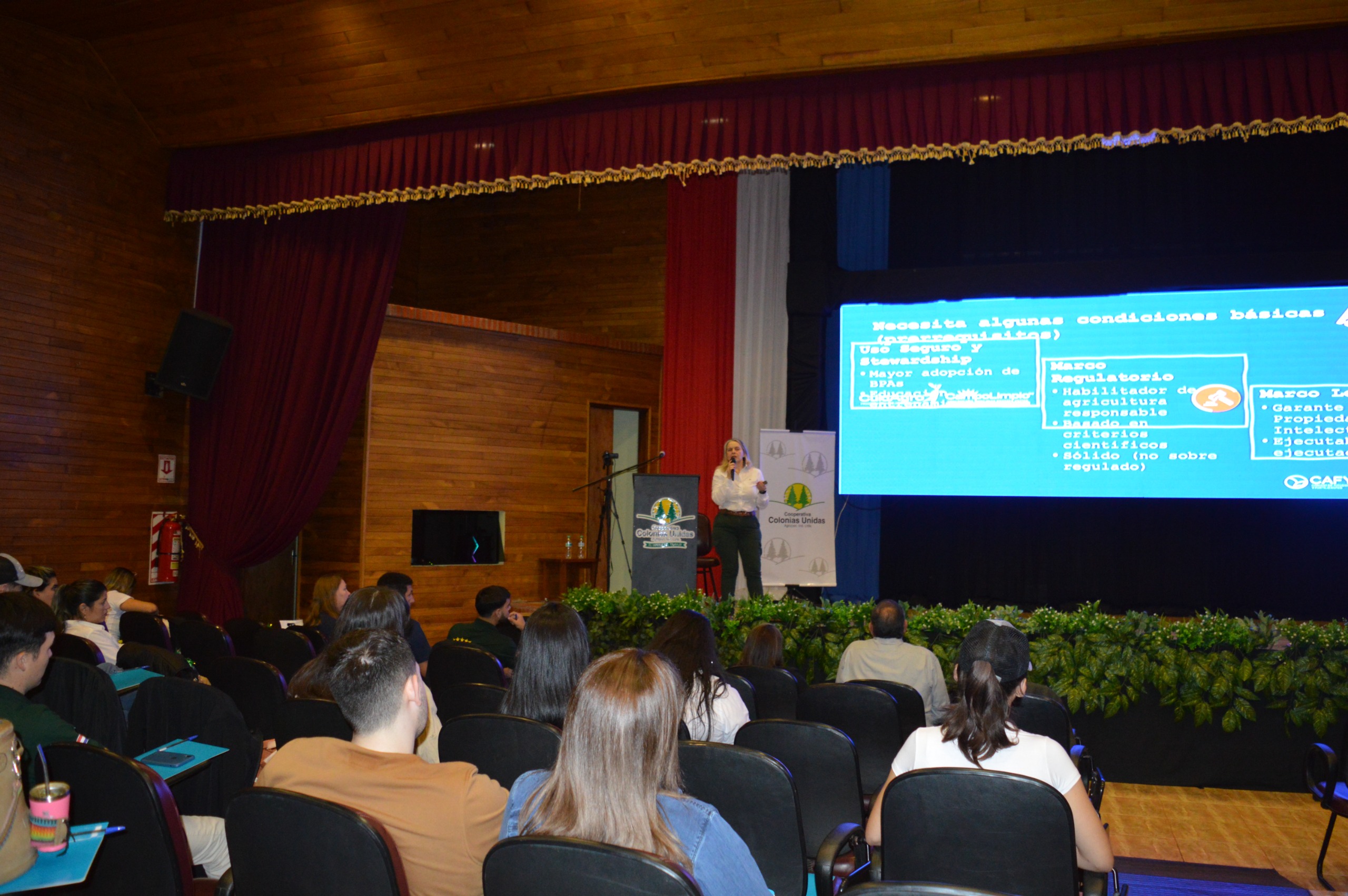 Durante la jornada, la Ing. Agr. Liz Rojas, directora ejecutiva de CAFYF, ofreció una conferencia titulada: “Recursos para la producción sustentable aplicados a la agricultura paraguaya: innovación, tecnología y gestión responsable”, abordando temas clave para el futuro de la agricultura.