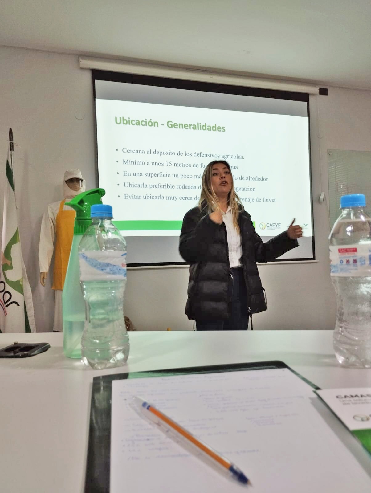 En la oportunidad, la Ing. Agr. Helena Valdovinos, coordinadora Técnica de CAFYF, brindó una charla y realizó prácticas sobre Camas Biológicas. Explicó que las mismas son estructuras biológicamente diseñadas para la degradación de excedentes de defensivos agrícolas mediante la actividad microbiana. Estos excedentes son los resultados de los lavados de los pulverizadores de mochila, pulverizadores tractorizados y el triple lavado de los envases de defensivos agrícolas.